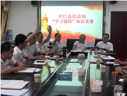 四是开展“学习强国”知识竞赛。组织全体党员和入党积极分子开展了“学习强国”知识竞赛,通过必答抢答风险题三轮激烈的竞争和加赛,角逐出了一等奖1名、二等奖2名、三等奖3名。局党组书记、局长向卫平要求全体干部职工要坚持全面学习运用“学习强国”APP,用知识武装大脑,全面深入领会习近平新时代中国特色社会主义思想的内涵,再接再厉,不断提高自身素养。